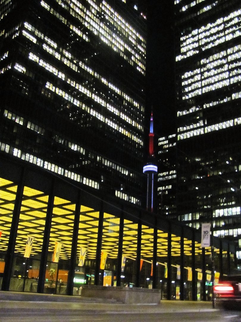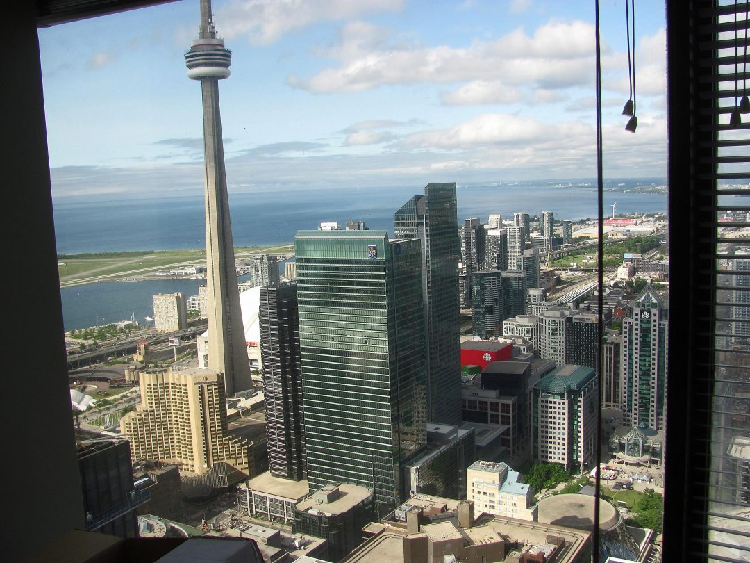 Se nyt vaan on niin, et kun pistetään pystyyn mantereen isoin torni (joka oli vuoteen 2007 asti maailman isoin), eihän sitä pääse pakoon sitten missään. 553,33 metrii korkeen CN Towerin voi bongata joka puolelta kaupunkia, ja jos on ikinä epävarma ilmansuunnista, jostain kulman takaa se aina näkyy. Sillon tietää, missä on etelä (paitsi jos on ihan Ontario-järven rannassa tai saarilla).