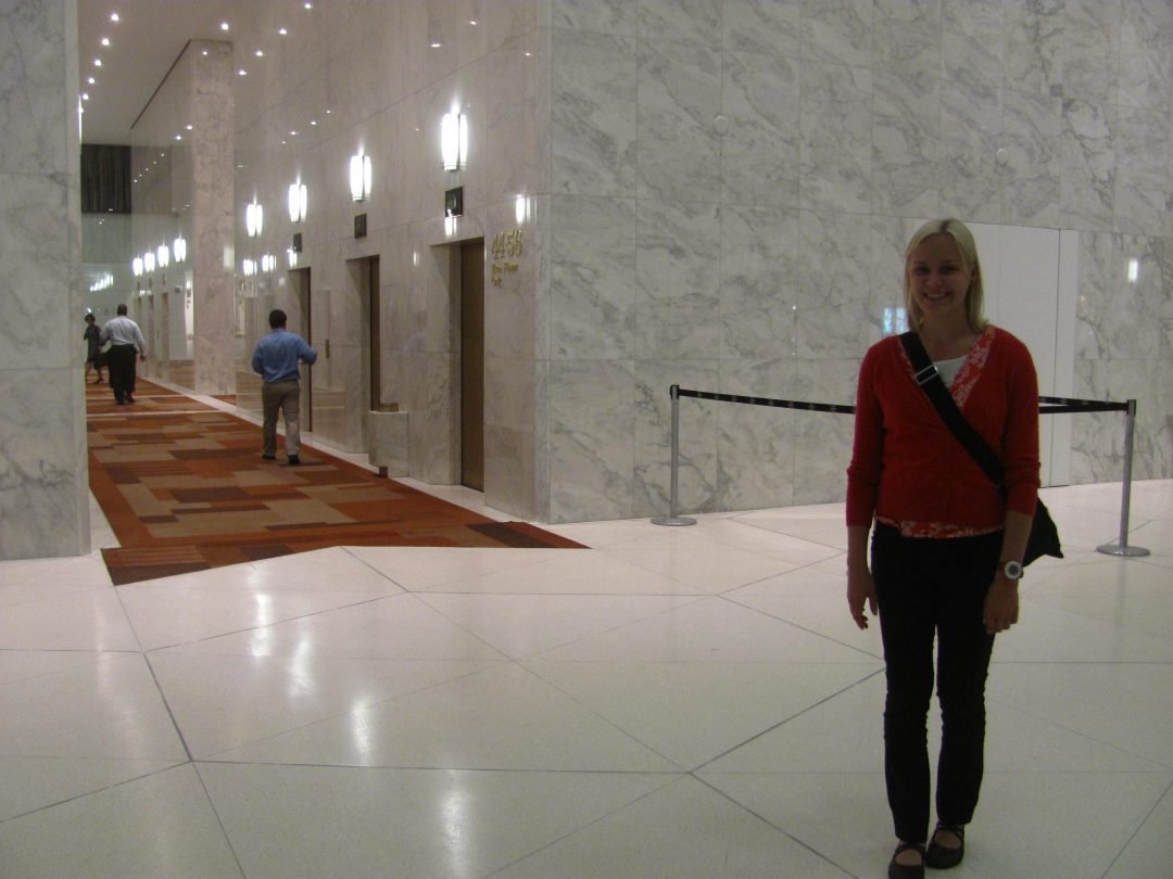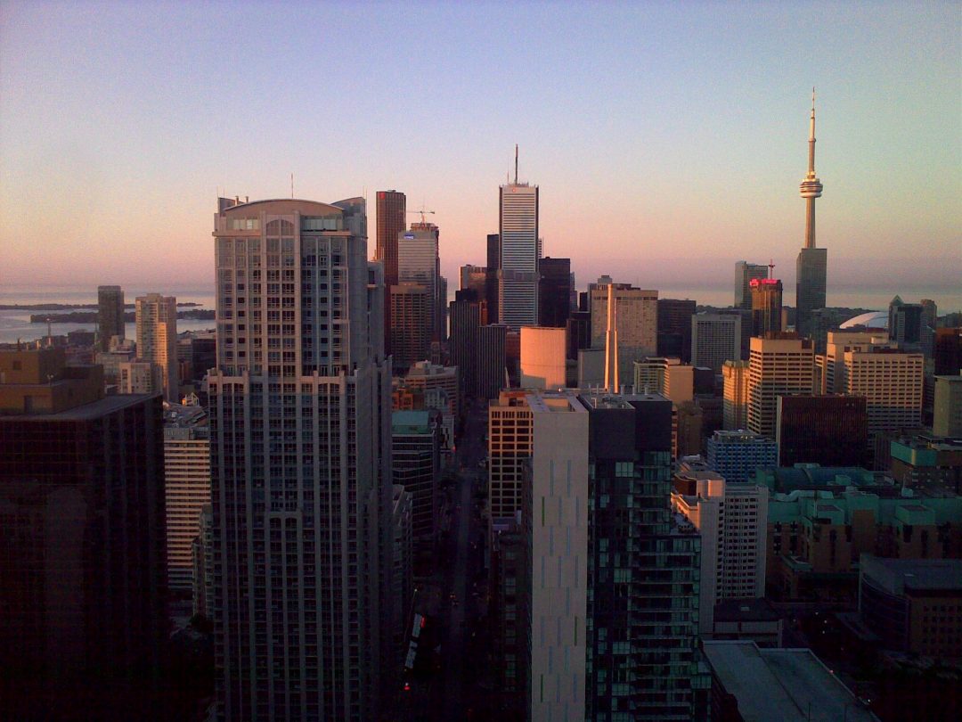 Sijainniltaan työpaikka natsaa. Jokapäiväisen 35-minuuttisen kävelyn kohteena on keskellä Torontoa seisova, Kanadan korkein toimistorakennus. 54. kerros ois muuten ihan siisti, mut ei sieltä mun sermilinnoituksesta minnekään nää. Hissit (28kpl) on kakskerroksisia ja matka ylös menee noin minuutissa, paitsi ruuhka-aikoina.