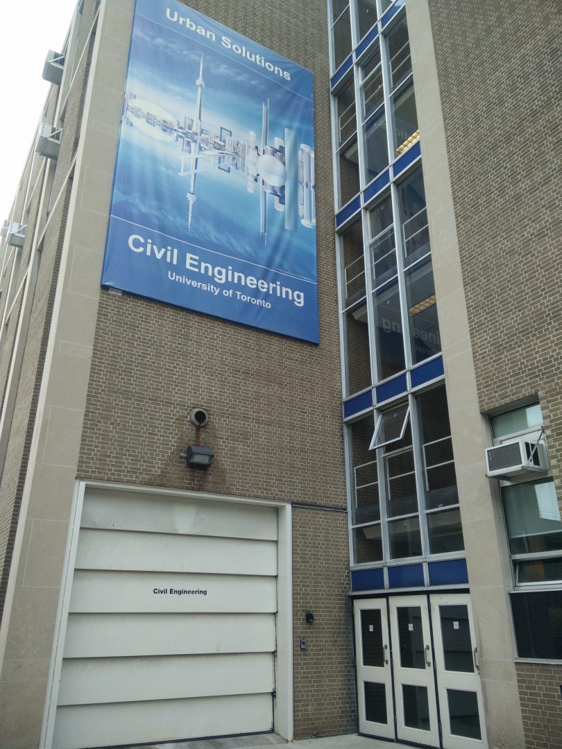 Koska työsuhteeni jäi näin lyhyeksi, minulle ei annettu varsinaista omaa työpistettä tai tietokonetta. Pääasiallinen työhuoneeni oli älykkäiden liikennejärjestelmien laboratorion kokoushuone, joka sijaitsee 1800-luvulla vaikuttaneen keksijän ja rautatieinsinöörin Sir Sandford Flemingin mukaan nimetyssä yliopistorakennuksessa, kilometrin päässä kotoani. Kun huoneessa silloin tällöin alkoi kokous, siirryin tilapäisesti tyhjään huoneeseen käytävän toiselle puolelle.