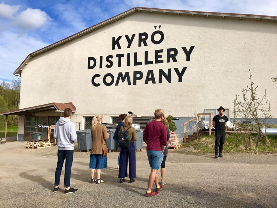 Kyrö Distillery! Vierailu Kyrö Distilleryssä sisälsi kierroksen tislaamossa sekä ginimaistiaiset. Kanadalaiset kuuntelivat tarkkaavaisesti, kun oppaamme Erkka kertoi meille tislaamon historiasta ja maistiaisten aikana eri ginityyppien tunnusomaisista piirteistä. Vierailu Kyrö Distilleryssä vaikutti tekevän hyvän vaikutuksen kanadalaisiin, sillä moni kyseli vierailun jälkeen mahdollisesta pysähdyksestä Alkossa.